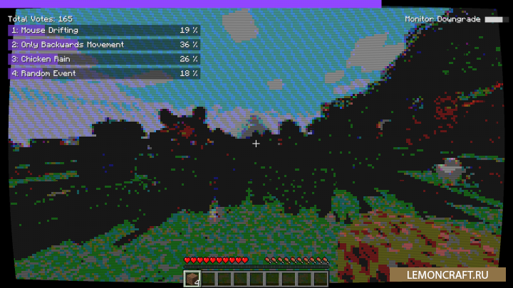 Мод на безумный мир Entropy: Chaos добавляет в игру различные непредвиденные события, которые будут происходить с интервалом в 30 секунд. Например, неожиданно произойдет взрыв, пойдет дождь из сфер опыта, произойдет телепортация в случайное место, вы сможете передвигаться только назад.